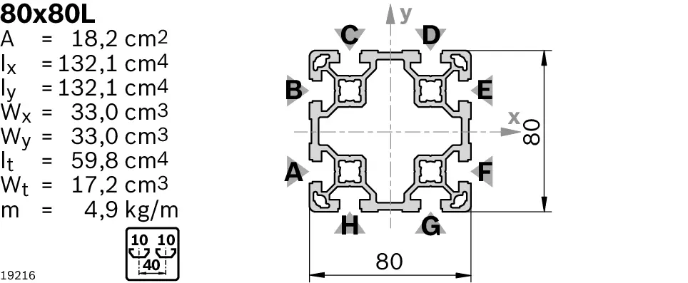 | Sección transversal | 80x80L |